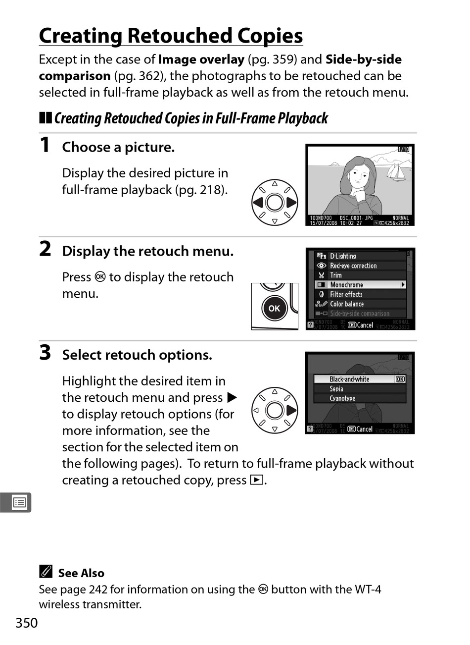 ❚❚ Creating Retouched Copies in Full-Frame Playback