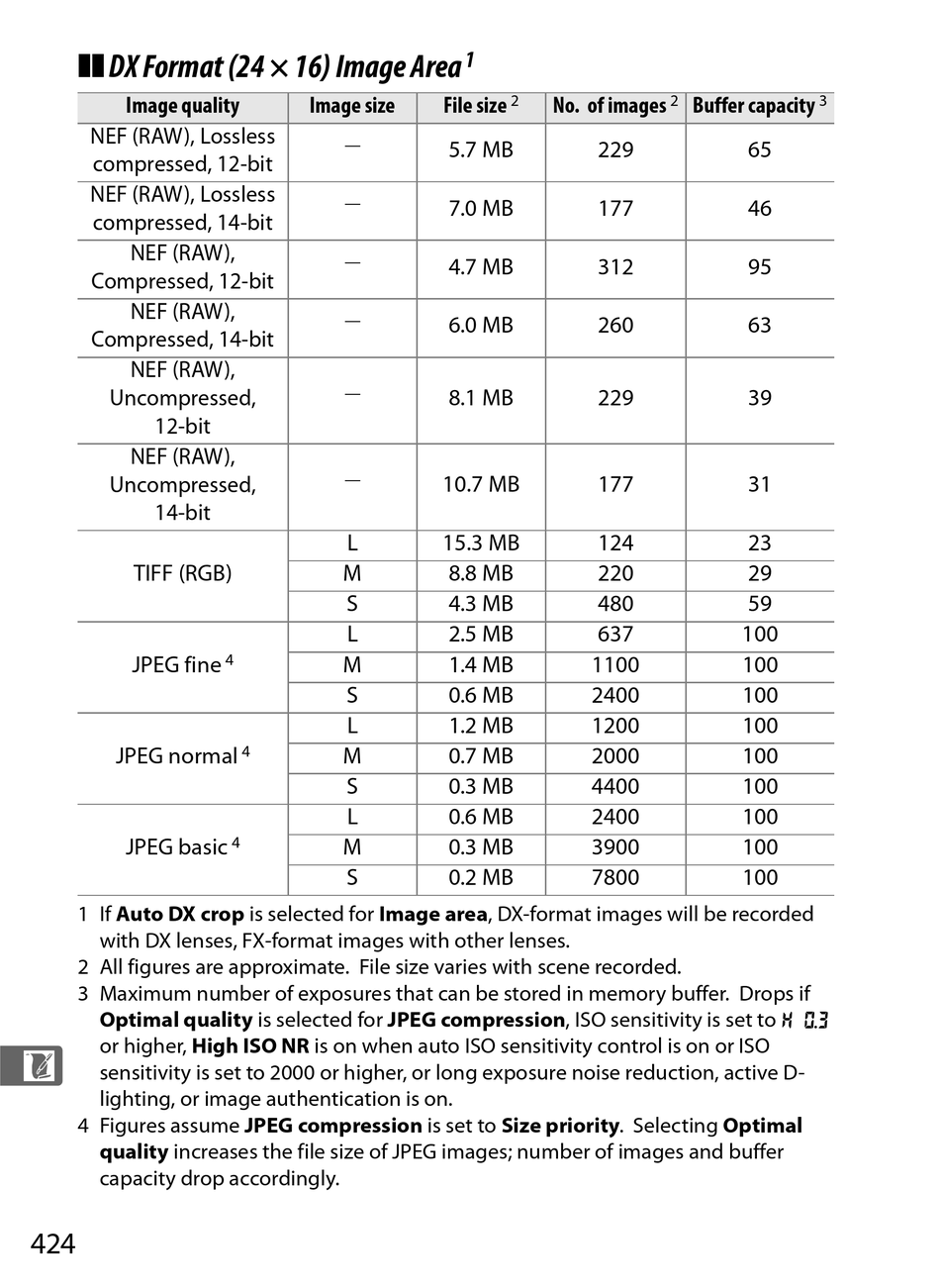 4 Figures assume JPEG compression is set to Size priority. Selecting Optimal
