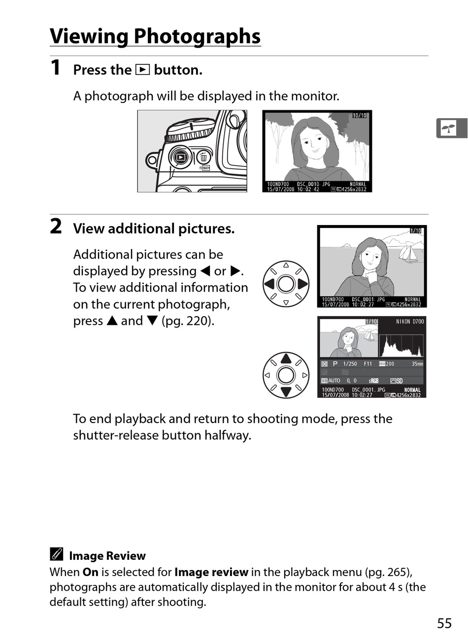 When On is selected for Image review in the playback menu (pg. 265),