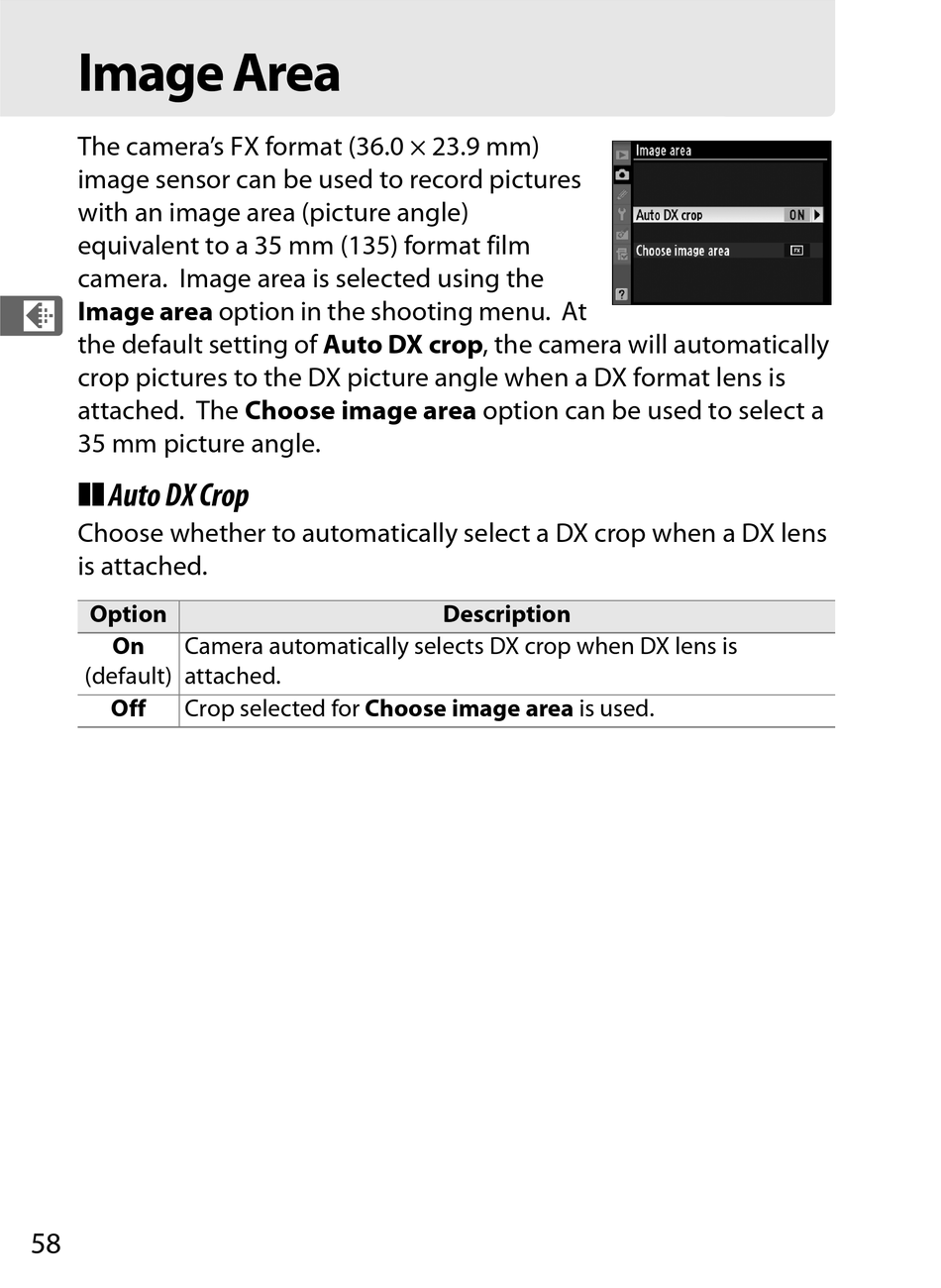 the default setting of Auto DX crop, the camera will automatically