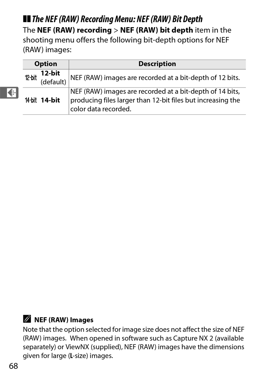 ❚❚ The NEF (RAW) Recording Menu: NEF (RAW) Bit Depth