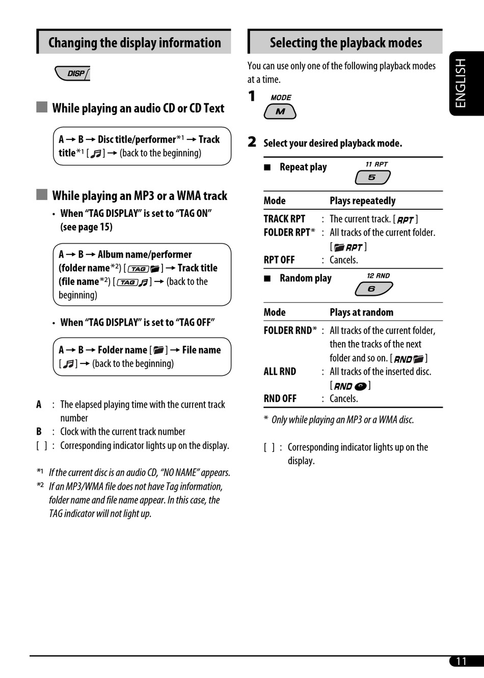 * Only while playing an MP3 or a WMA disc.