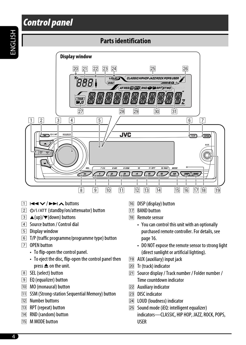 Source display / Track number / Folder number /