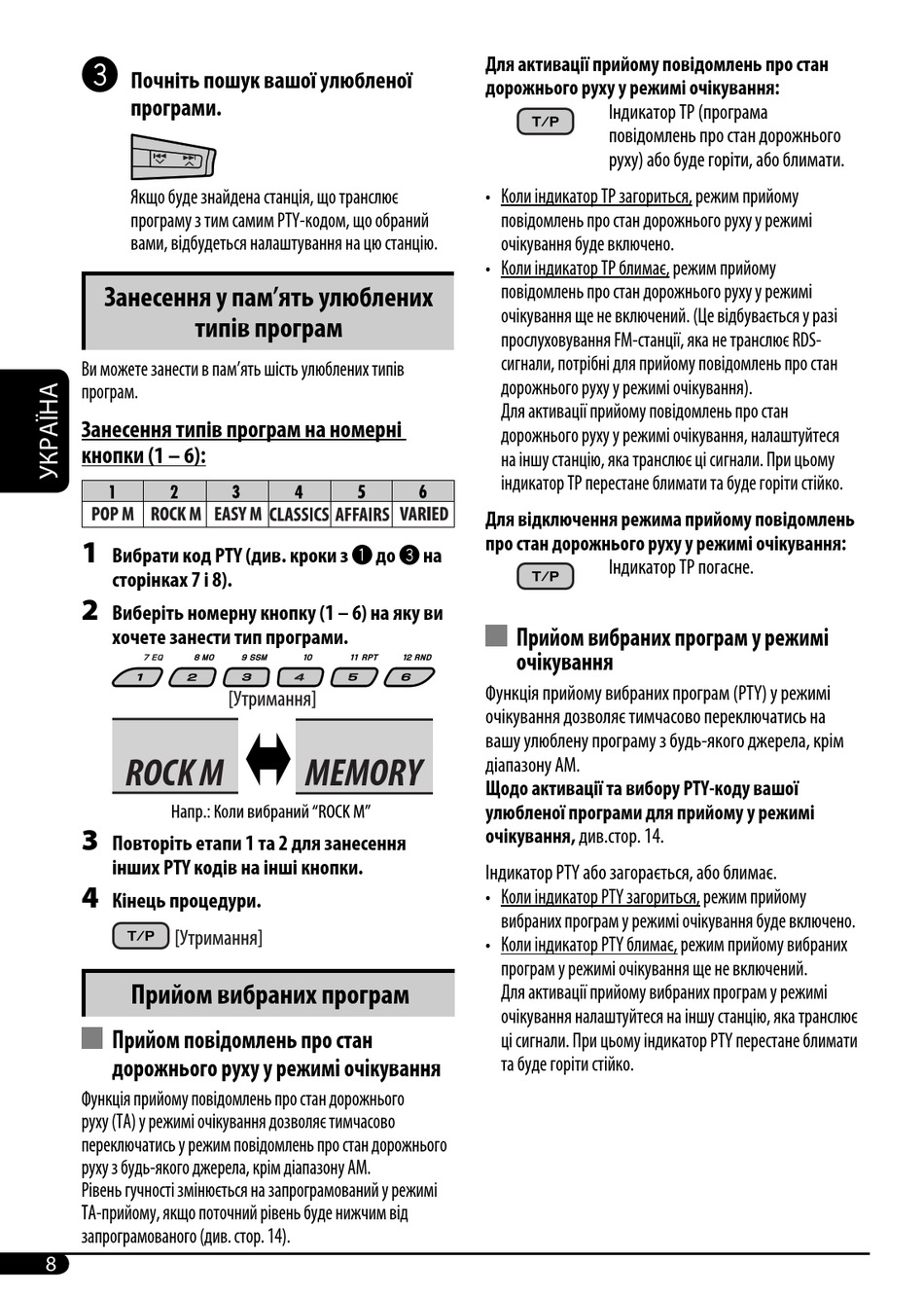 • Коли індикатор PTY блимає, режим прийому вибраних