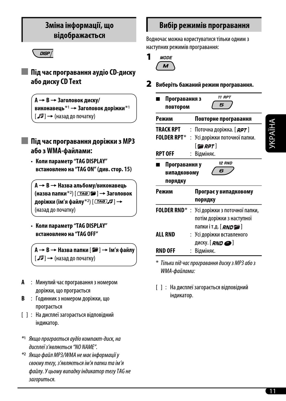 * Тільки під час програвання диску з MP3 або з
