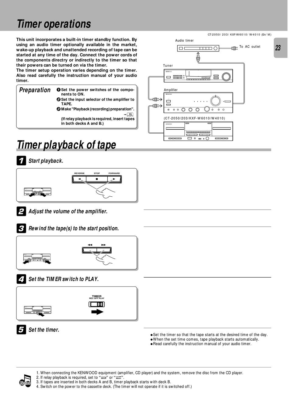 3. If tapes are inserted in both decks A and B, timer playback starts with deck B.