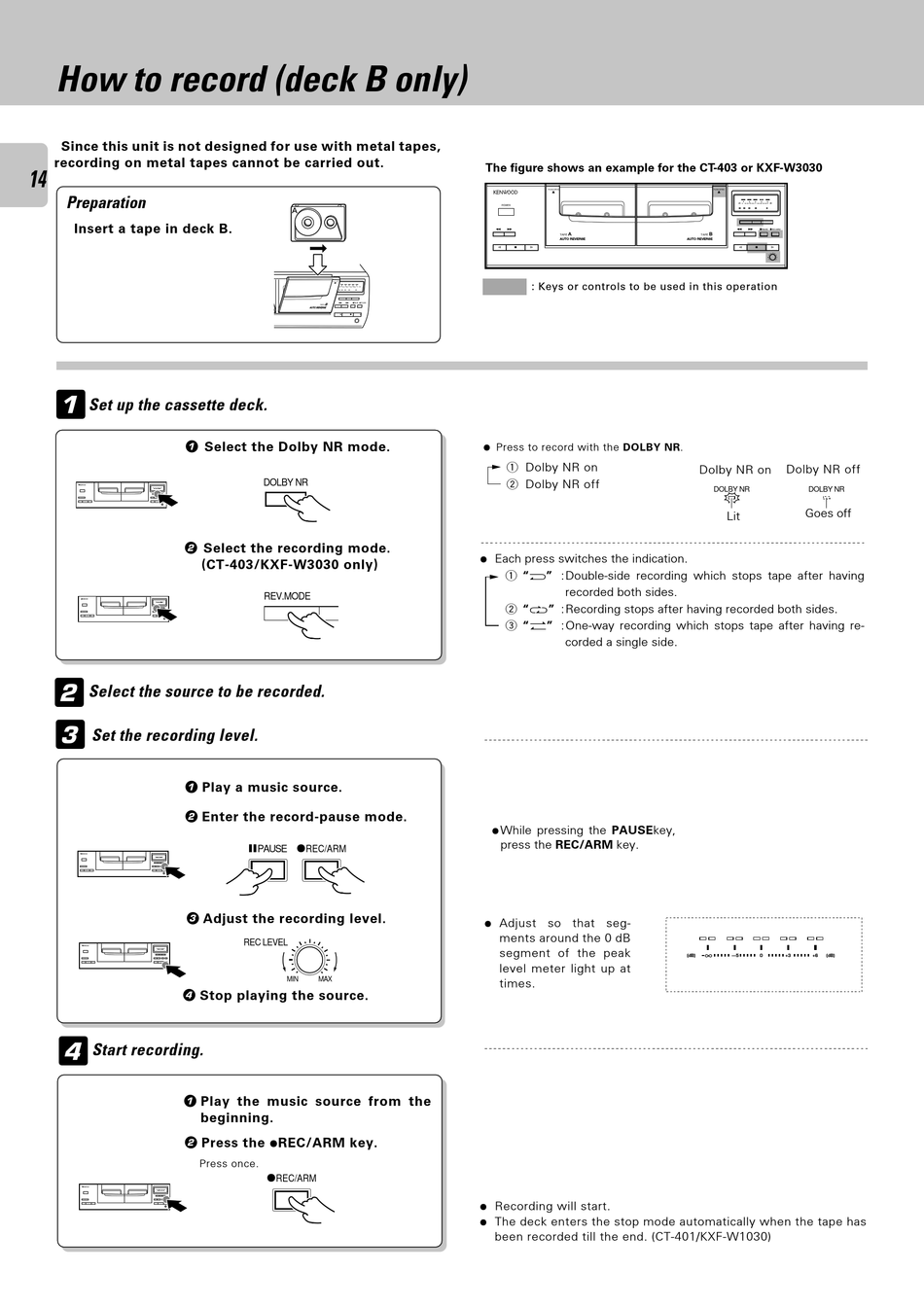 Press to record with the DOLBY NR.