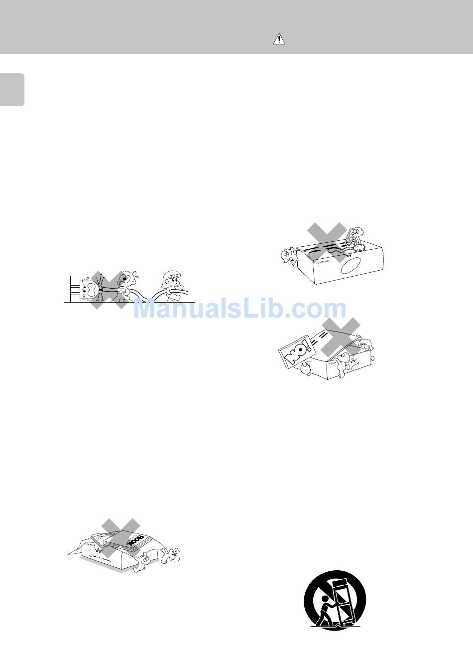 12.Accessories – Do not place this appliance on an unstable