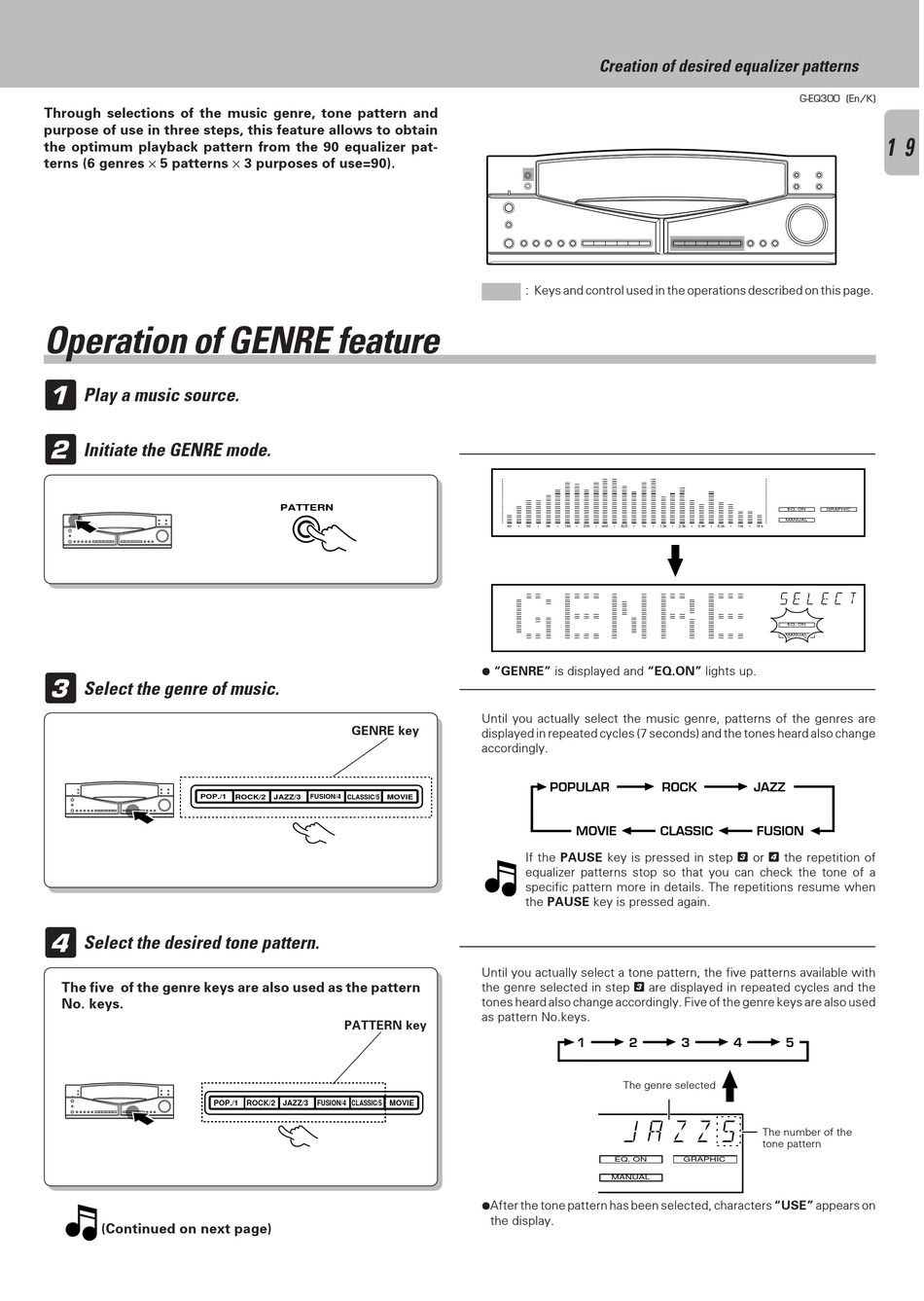 ¶ "GENRE" is displayed and "EQ.ON" lights up.