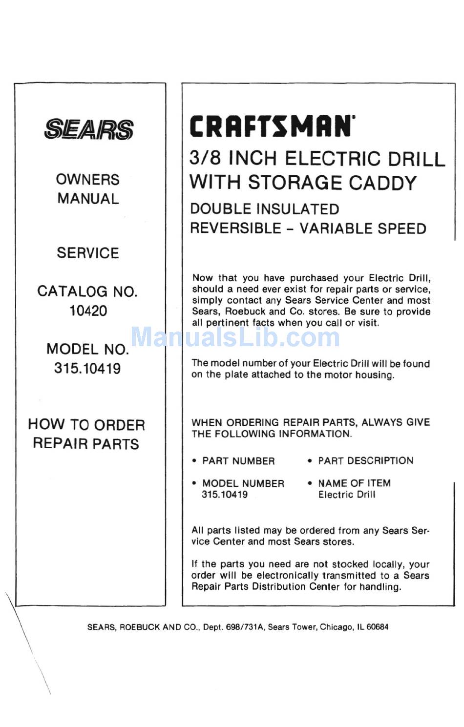 SEARS, ROEBUCK AND CO., Dept. 698/731A, Sears Tower, Chicago, IL 60684