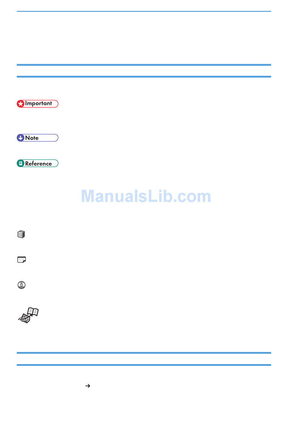 Indicates supplementary explanations of the machine's functions, and instructions on resolving user errors.