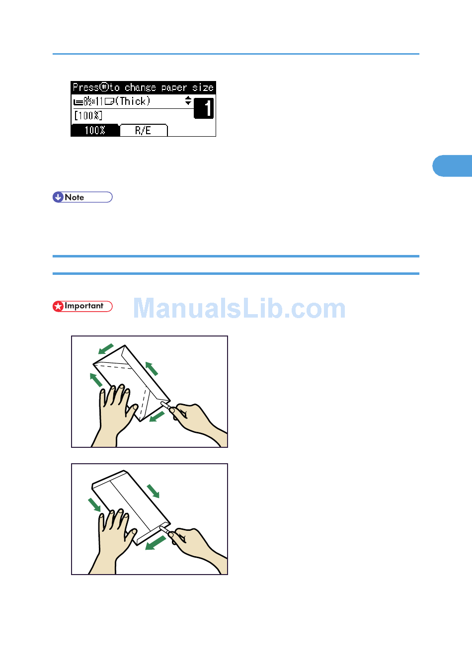 • Before loading envelopes, use a pen or similar to flatten their edges.