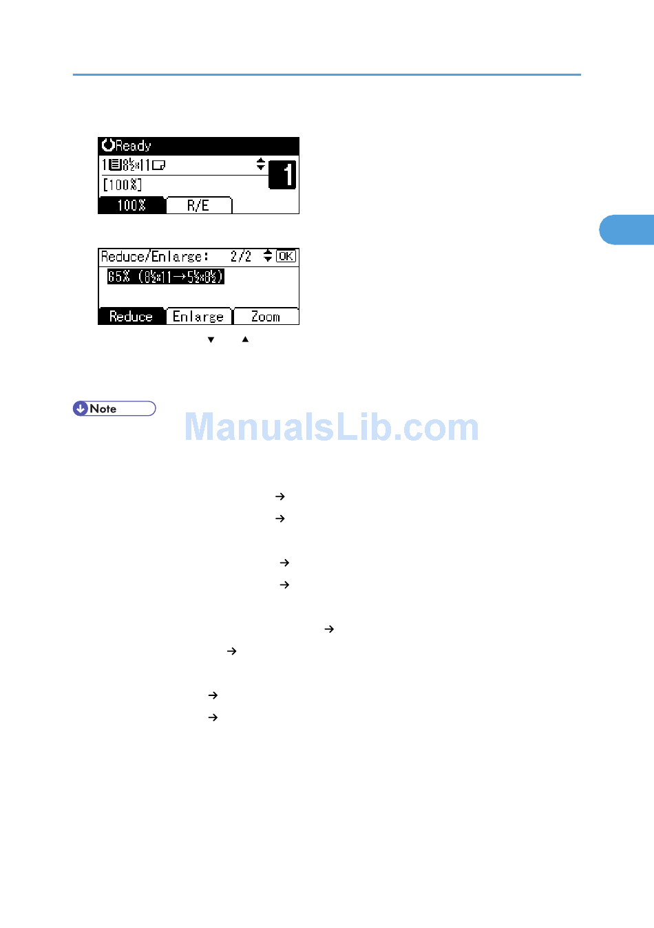 • You can select one of five preset ratios (two enlargement ratios, three reduction ratios).