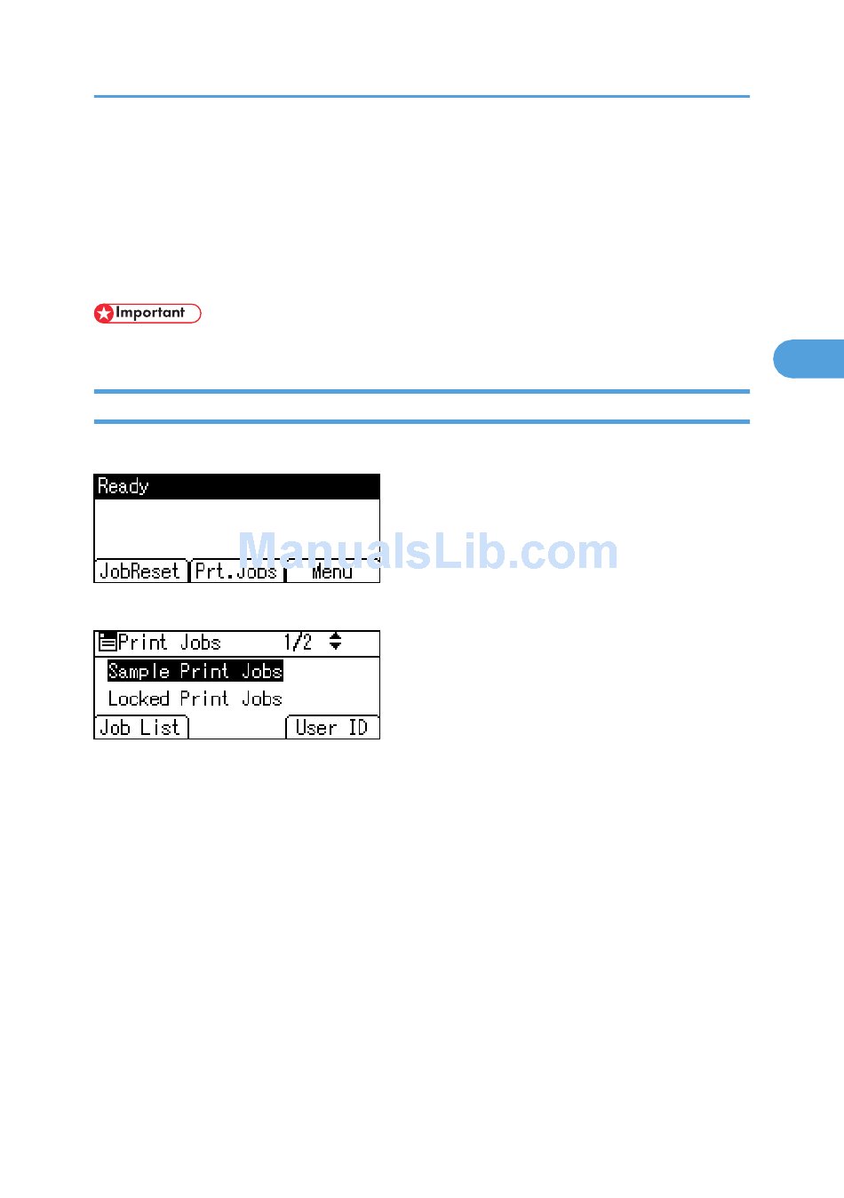 If you press [Prt.Jobs] on the initial screen, a screen prompting to select the type of print job appears.