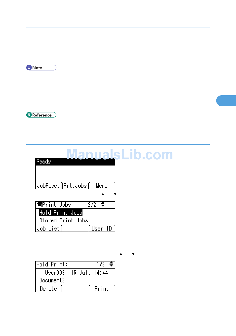 • For details about setting printer drivers, see the printer driver Help. You can also print or delete a Hold