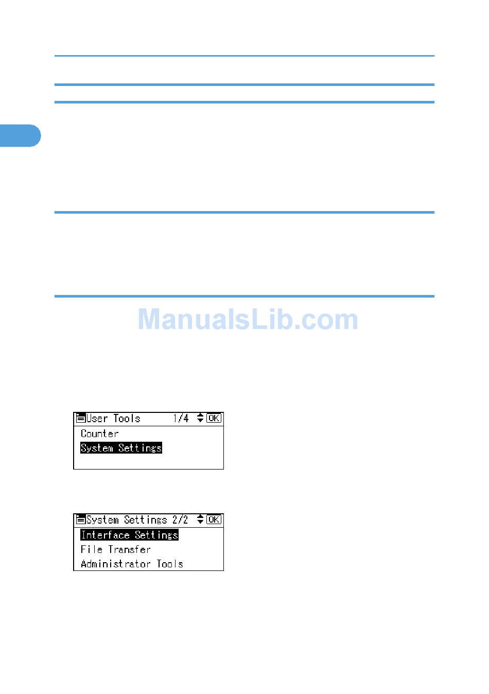 Press the [User Tools/Counter] key, select [System Settings], and then press the [OK] key.