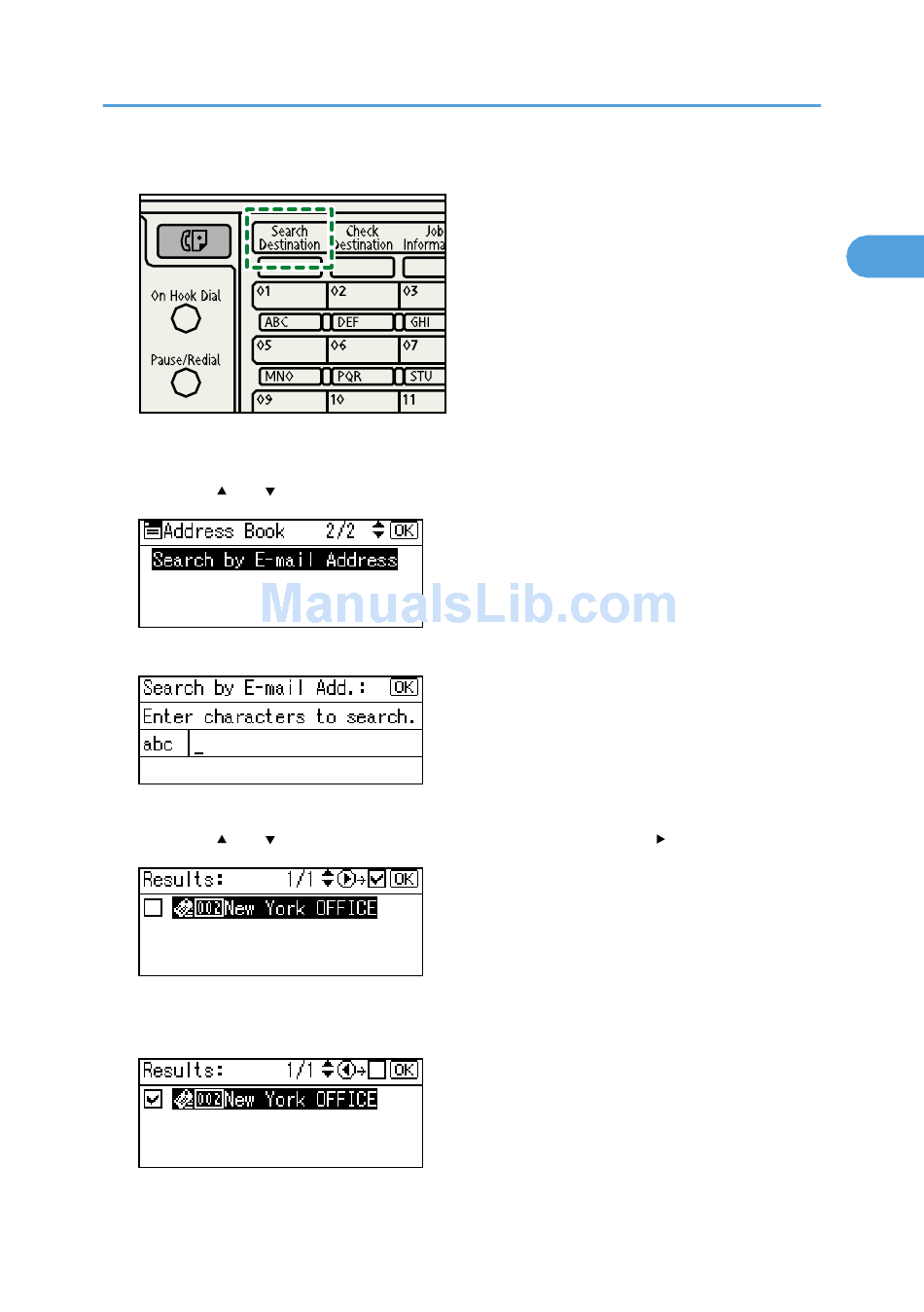 Press the [ ] or [ ] key to select [Search by E-mail Address], and then press the [OK] key.