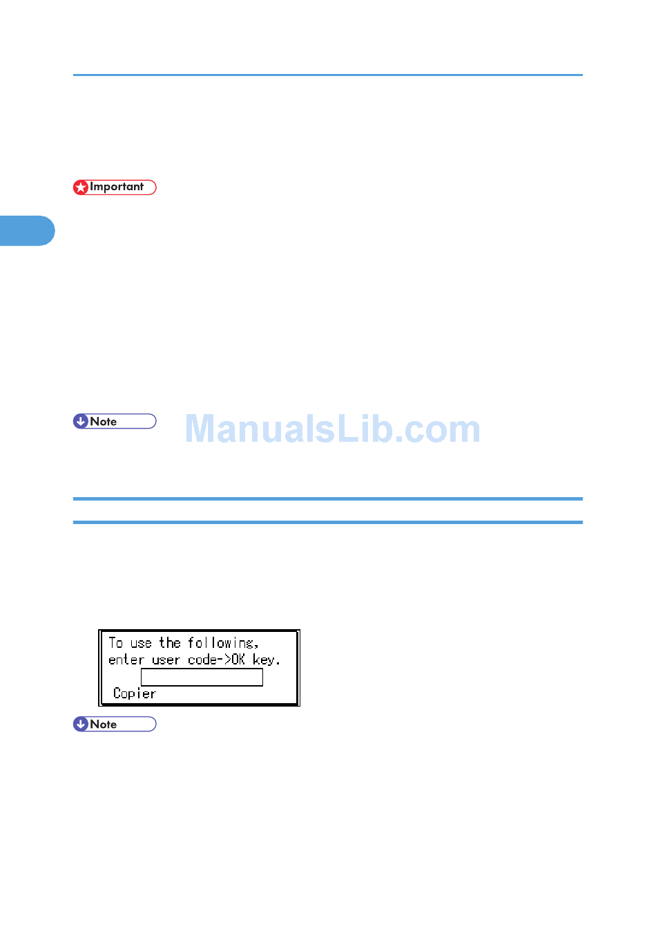 This section explains the procedure for logging in to the machine using the control panel while User Code