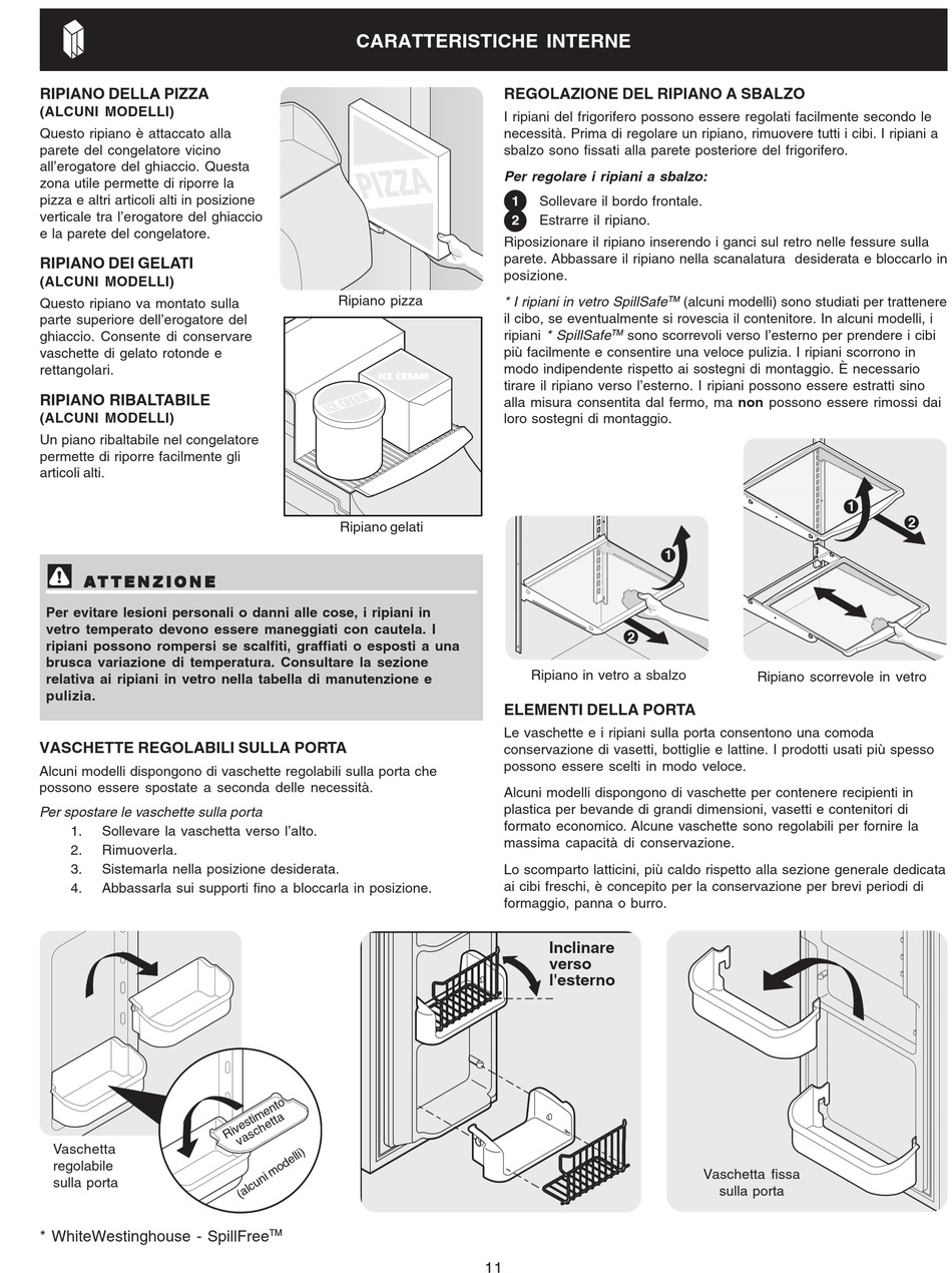 necessità. Prima di regolare un ripiano, rimuovere tutti i cibi. I ripiani a