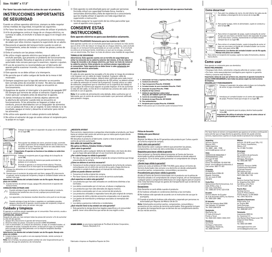 Después de cada uso, lave siempre todas las piezas del exractor a fin de aumentar