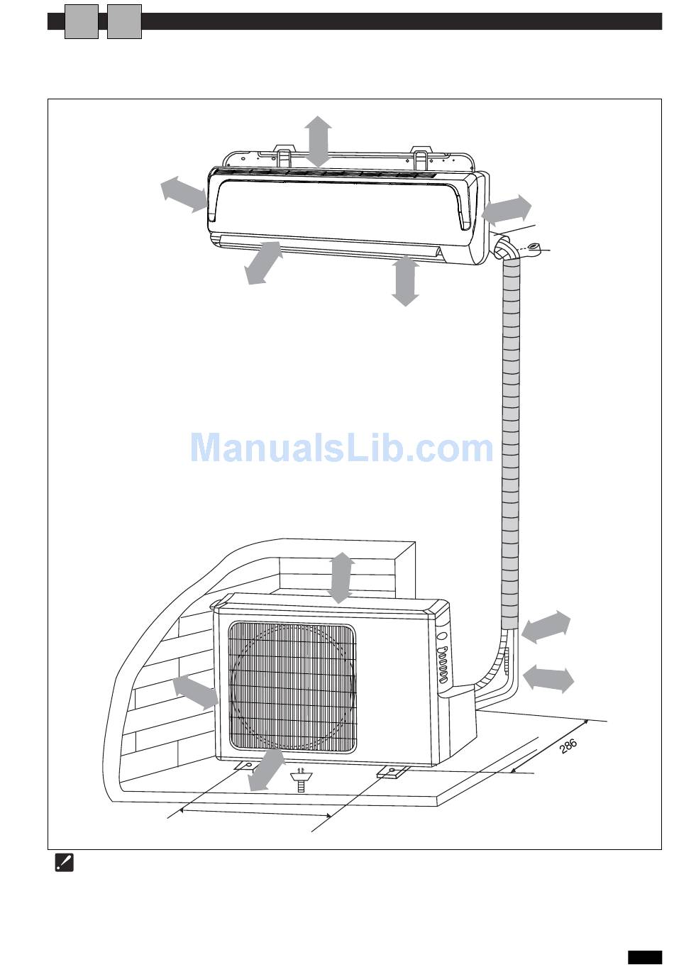 The distance from the ceiling must be