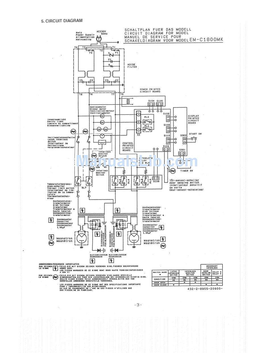 Microwave Oven Sanyo EM-C1800K Service Manual