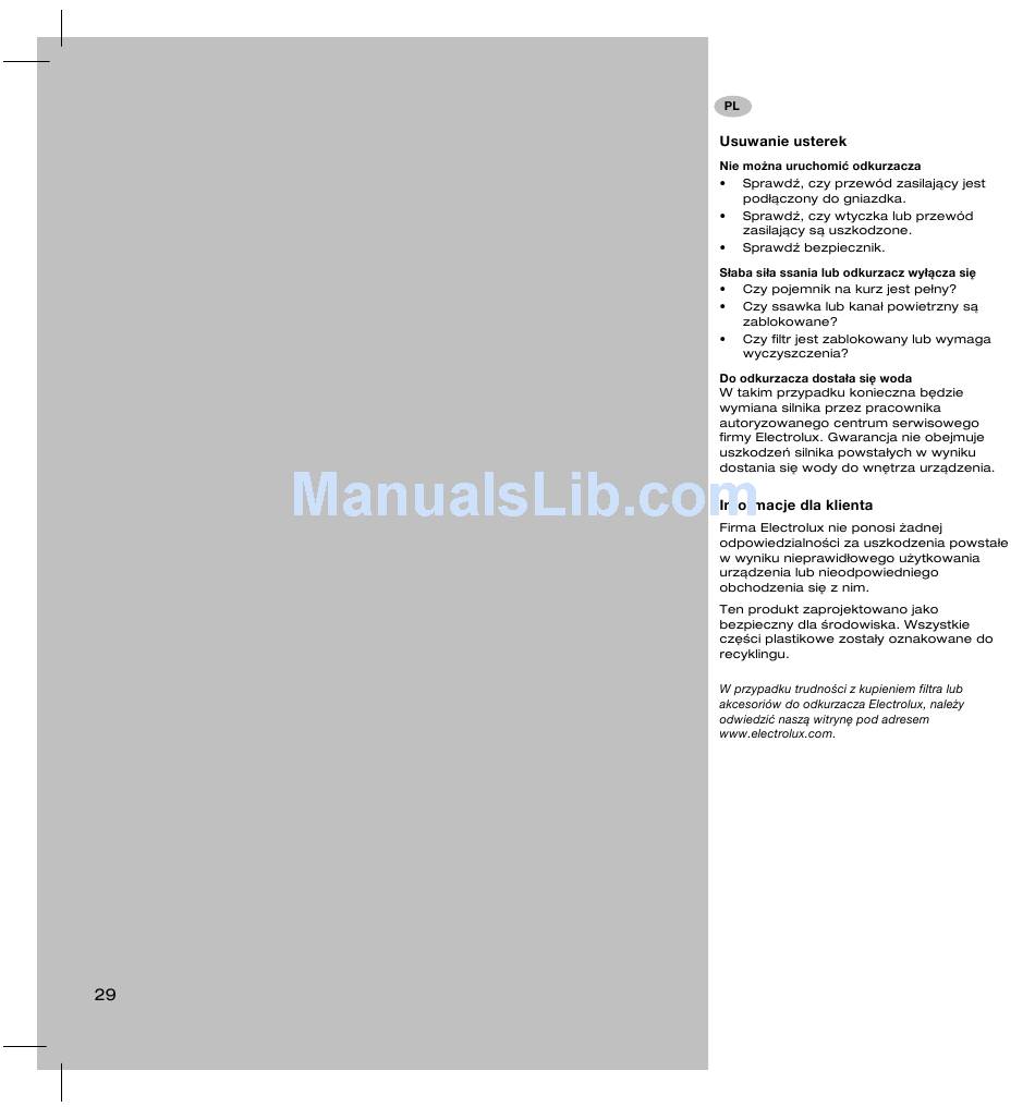 Vacuum Cleaner Electrolux PD91-GREEN Instruction Book