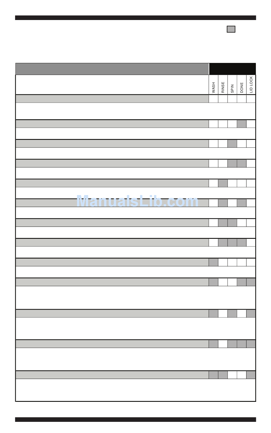 • If lid does not lock or unlock, go to TEST #8: Lid Lock, page 18.