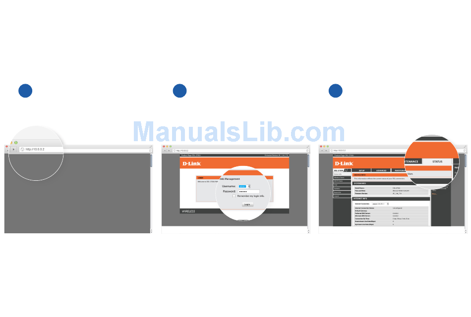From the D-Link page that loads, click Status