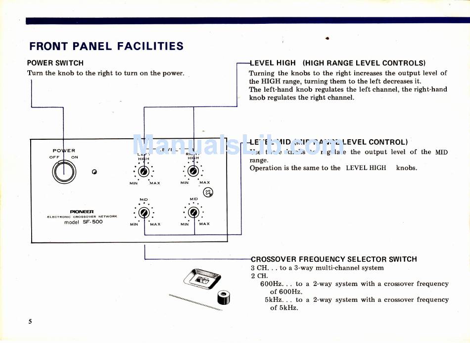 Panel Facilities; Level Controls - Pioneer Sf-500 Electronic Crossover Network Installation, Operation And Service Manual