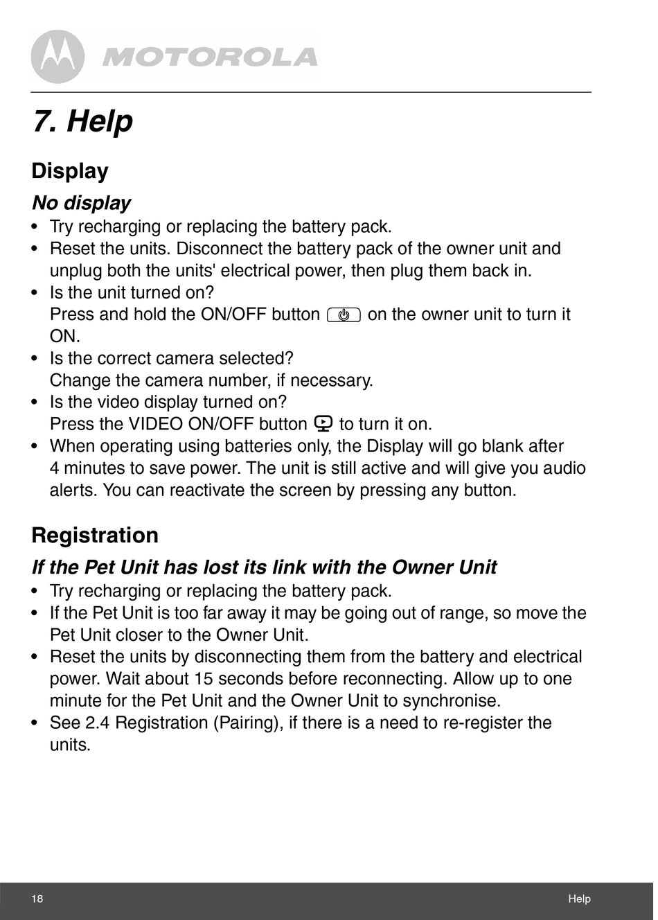 • See 2.4 Registration (Pairing), if there is a need to re-register the