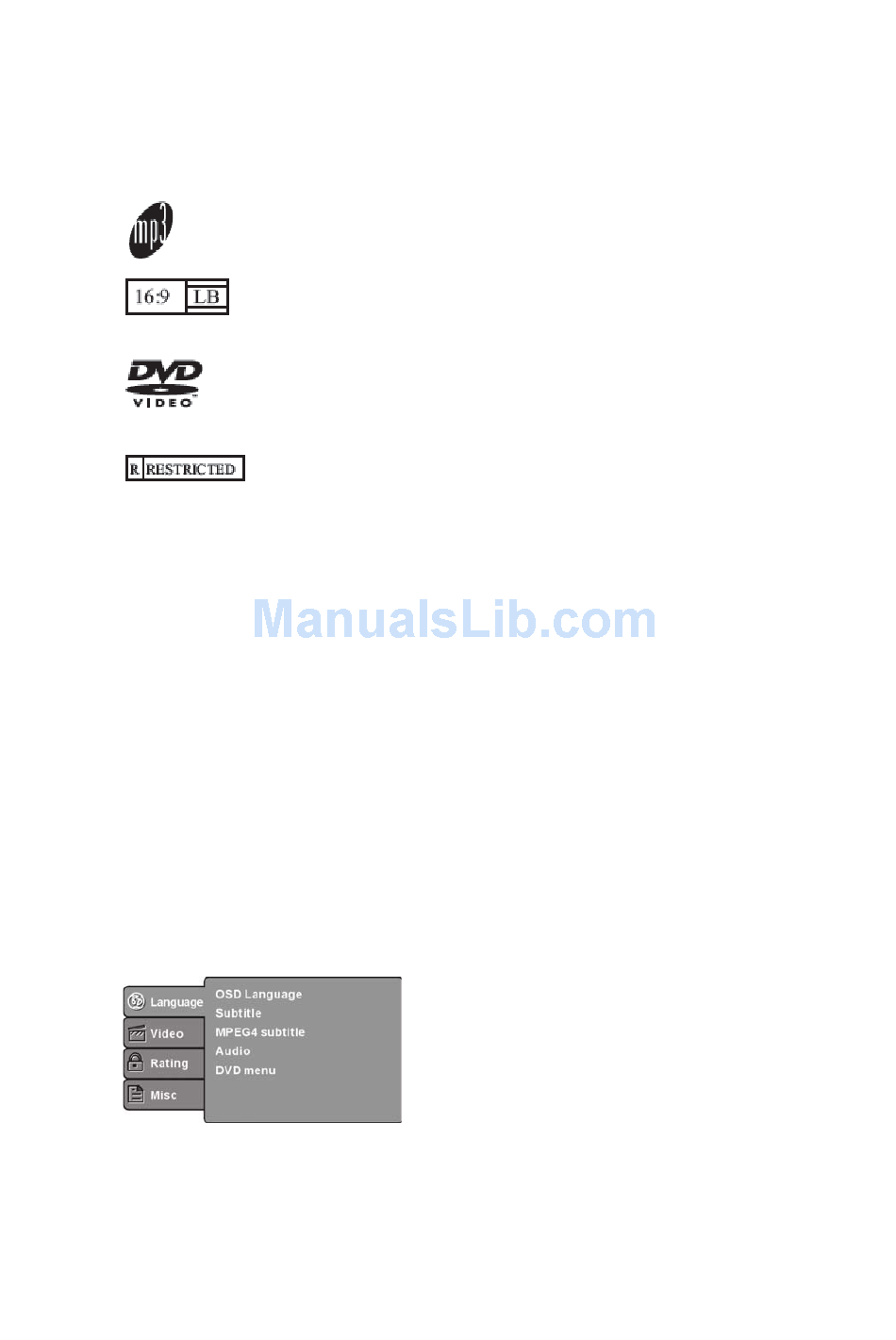 Selecteer "Language" in het instellingenmenu en het "Language"-submenu wordt weergegeven: