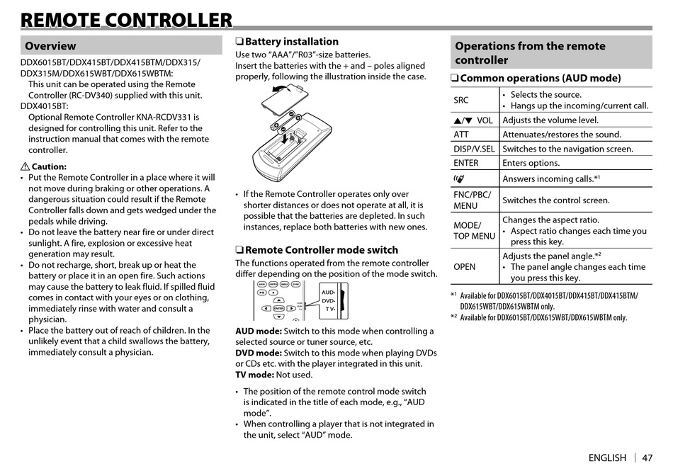 Available for DDX6015BT/DDX4015BT/DDX415BT/DDX415BTM/