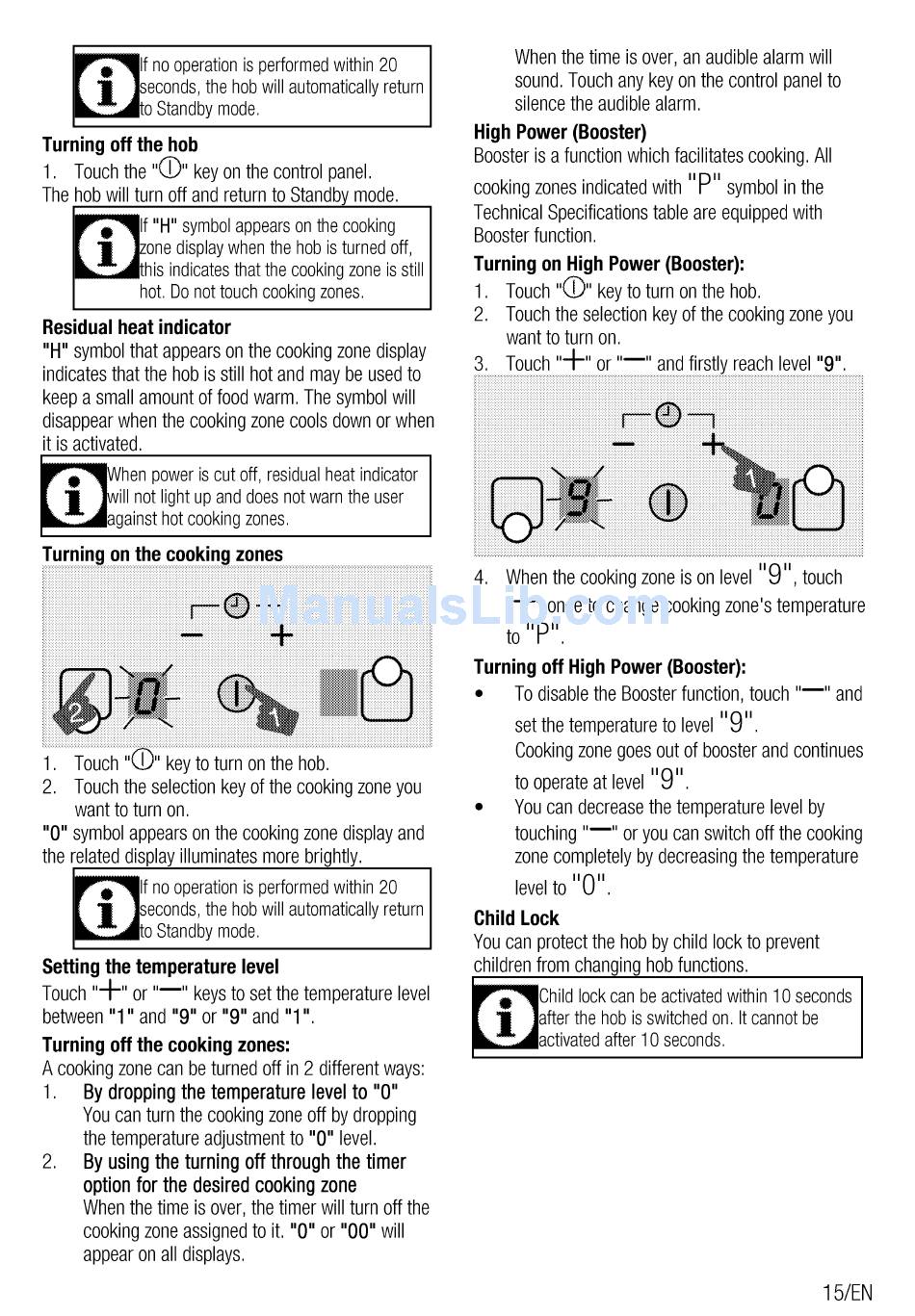 Turning Off The Hob; Residual Heat Indicator; High Power; Turning On High Power - Beko Hdmi 32400 Dtx User Manual