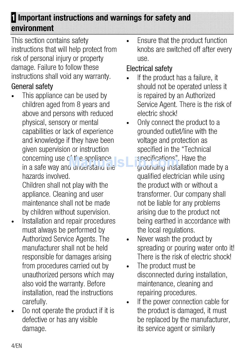 KTG613W Important Instructions And Warnings For Safety And Environment