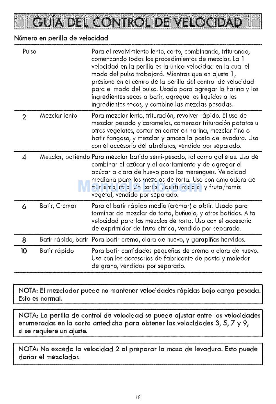NOTA: El mezclador puede no mantener velocidades r6pidas bajo carga pesada.