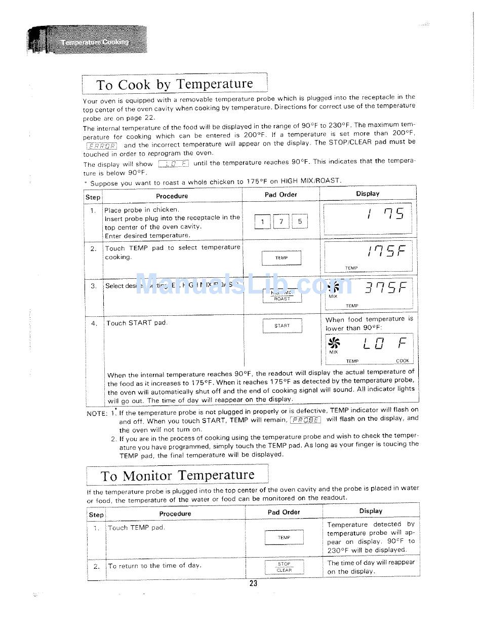 To Cook By Temperature; To Monitor Temperature - Sharp Carousel Ii R-8570 Operation Manual