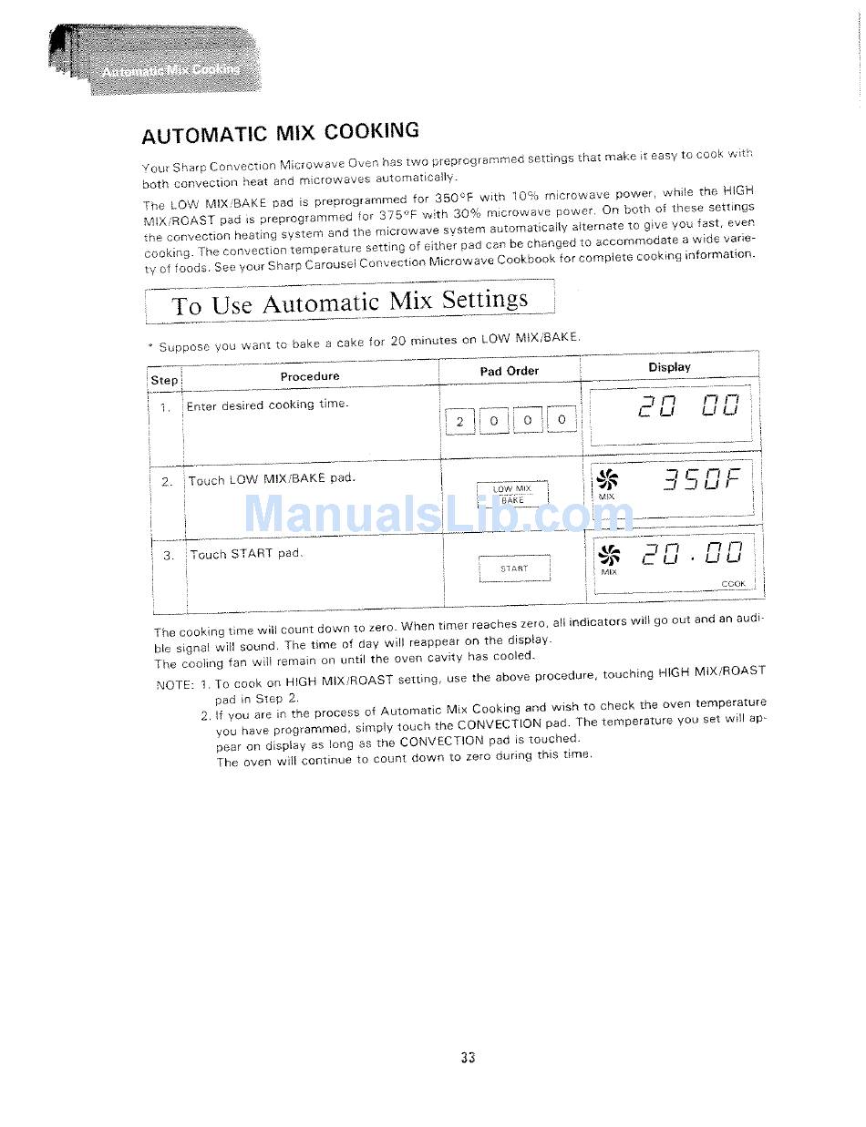 Automatic Mix Cooking; To Use Automatic Mix Settings - Sharp Carousel Ii R-8570 Operation Manual