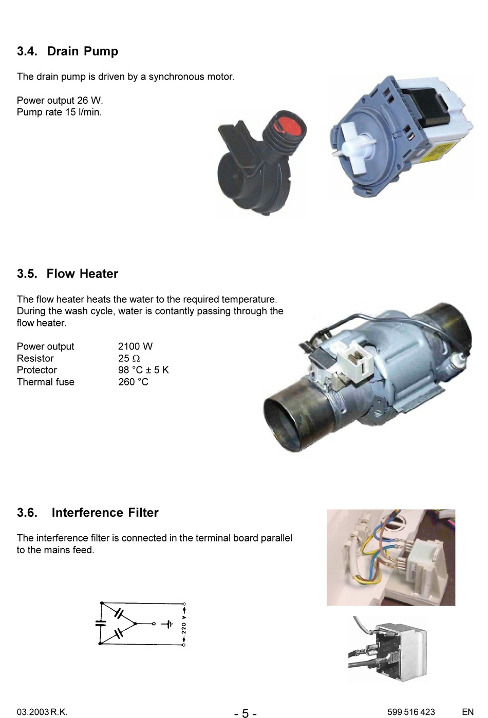 Drain Pump; Flow Heater; Interference Filter - Electrolux Diva Service Manual