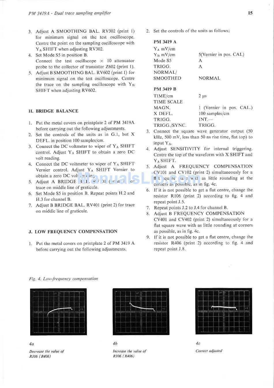 Bridge Balance; Low Frequency Compensation - Philips Pm 3419A Service Manual