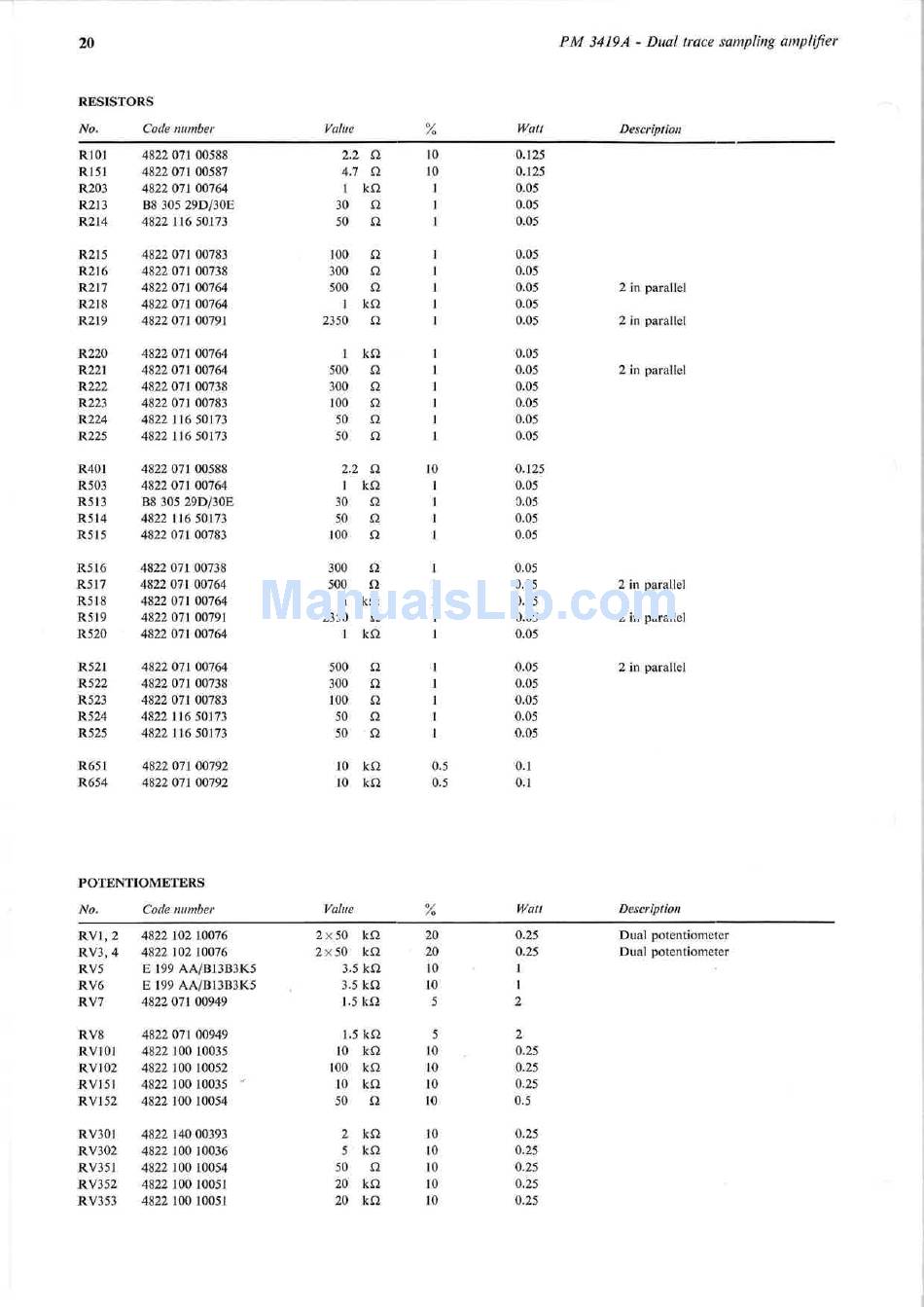 Resistors; Potentiometers - Philips Pm 3419A Service Manual