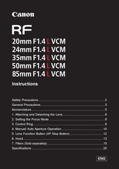 Canon RF 85mm F1.4 L VCM Manuals