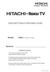 Hitachi 32RZ2 manual available for free PDF download: Important Product Information Manual