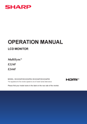Sharp MultiSync E244F manuals available for free PDF download: Setup Manual, Operation Manual